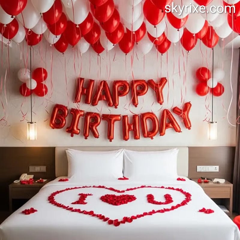 Red and Pink 24th Birthday Room Decoration with Ceiling Balloons