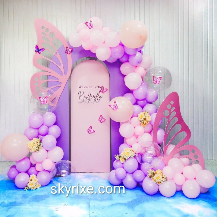 Pastel Butterfly Theme Birthday Decoration with Balloon backdrop