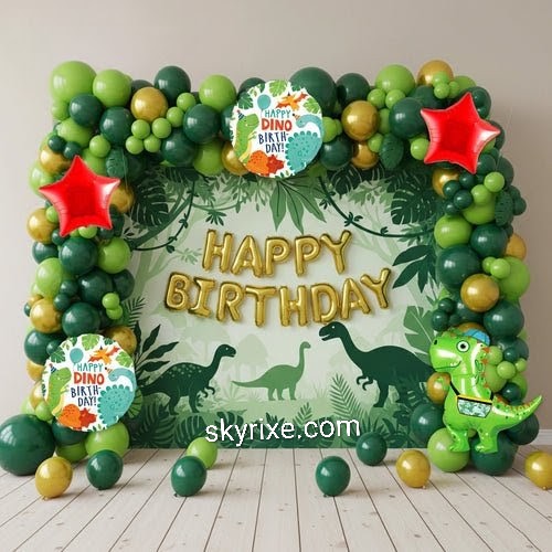 Dinosaur Theme Birthday Balloon Decoration Setup