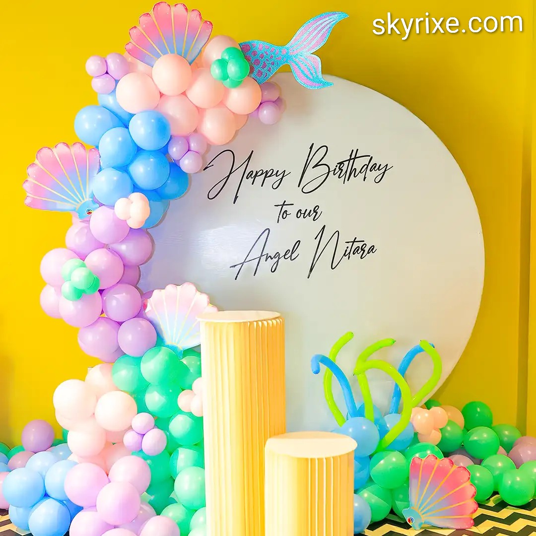 Magical Mermaid Birthday Backdrop with Pastel Balloon Garland