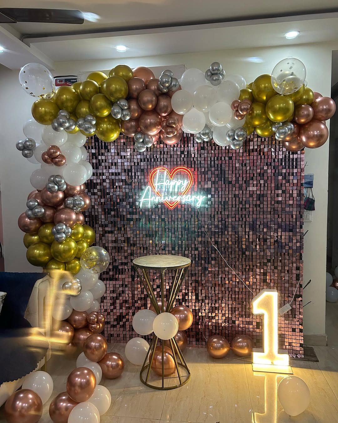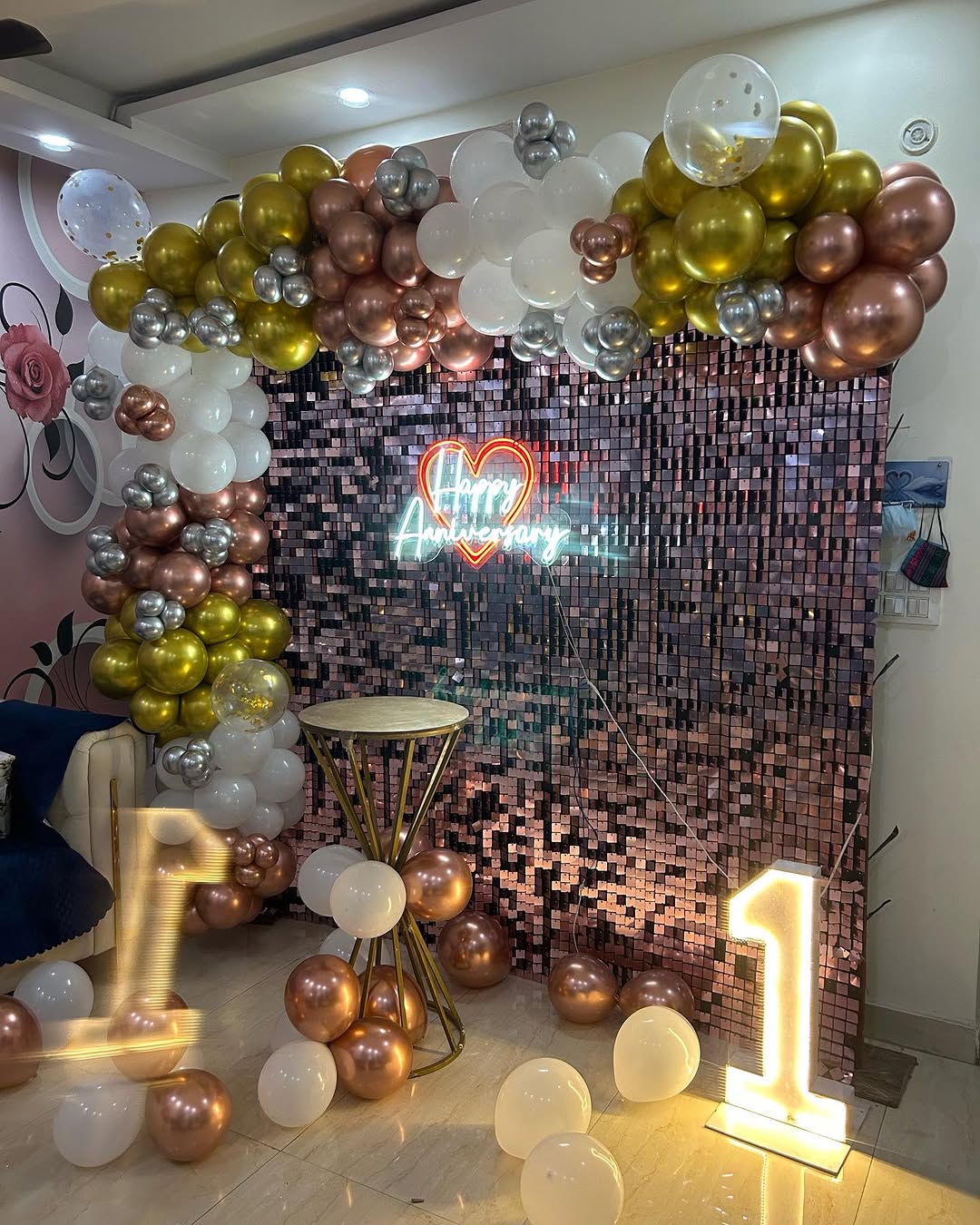 ✅Light-Up Number "1" Sign (1 pc): Can be changed based on the anniversary year. (Rented)
