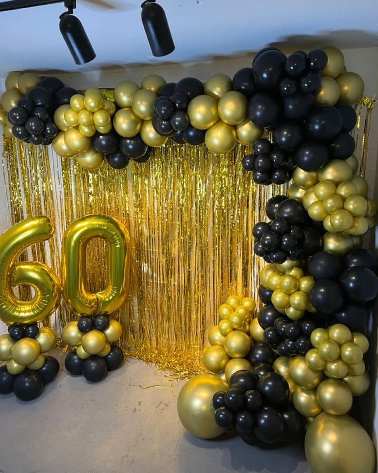 ✯✯This luxurious black and gold-themed balloon backdrop is perfect for milestone celebrations such as 40th, 50th, 60th birthdays, anniversaries, corporate events, and formal parties. The combination of black and metallic gold balloons creates a <...