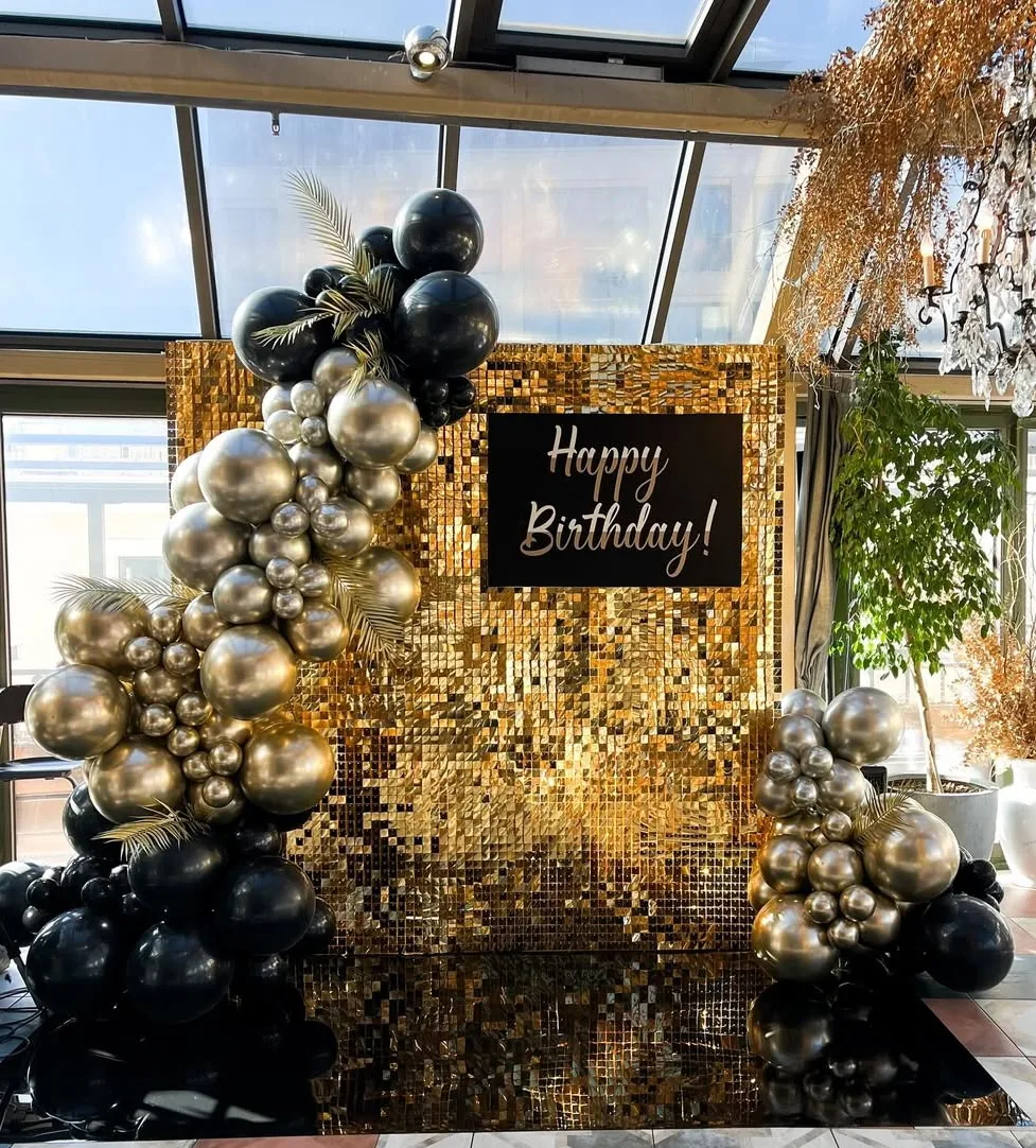 Turn any birthday into a high-end celebration with this dazzling Black & Gold Luxe Birthday setup, featuring a sequin shimmer wall, rich metallic balloons, and elegant styling. Designed to impress, this backdrop is perfect for adults or milestone birthdays who want to celebra...