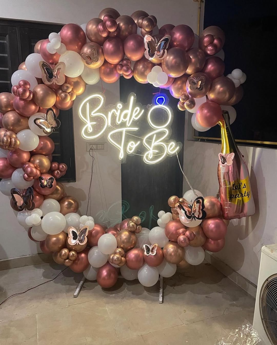 *️⃣This luxurious and stylish bridal backdrop is designed for a bachelorette party, bridal shower, or engagement celebration. The rose gold, white, and metallic balloons, along with delicate butterfly *️⃣accents, create an elegant and whimsical feel. The "Bride To Be" neon sign adds a modern and ...
