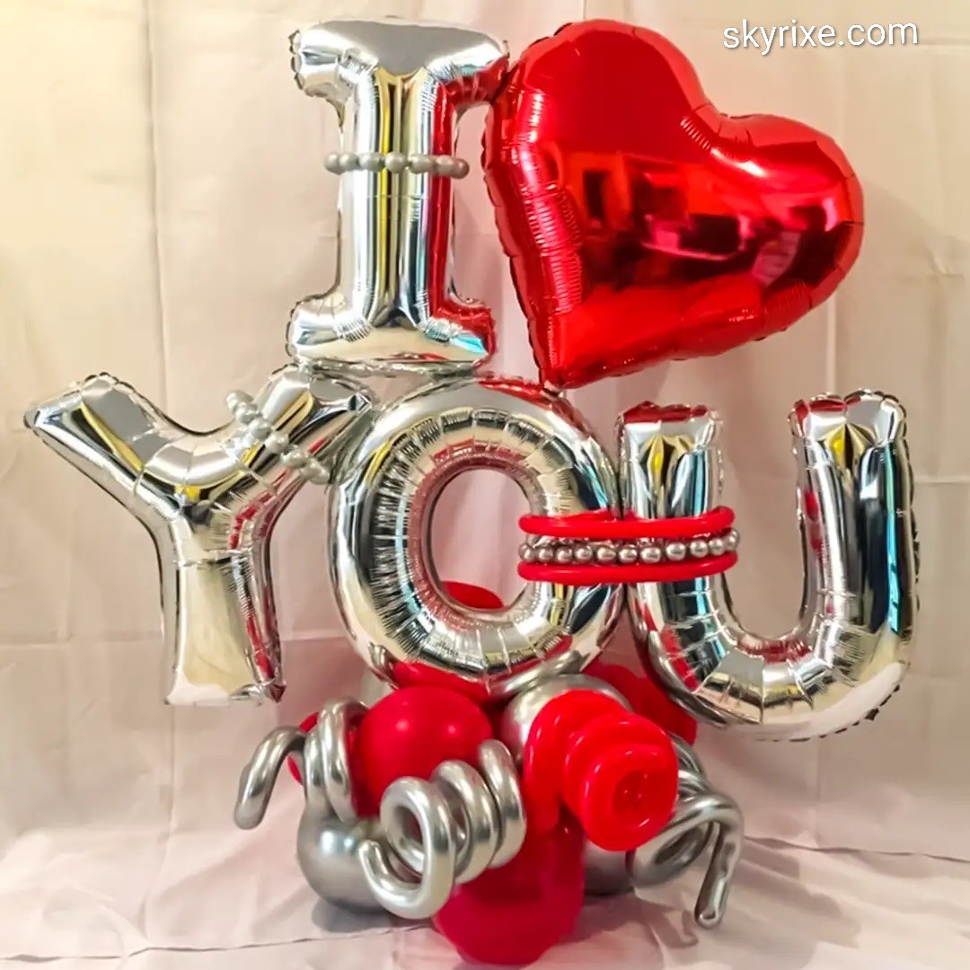 ✅Silver foil letter balloons: I, L, O, V, E, Y, O, U (clustered arrangement)