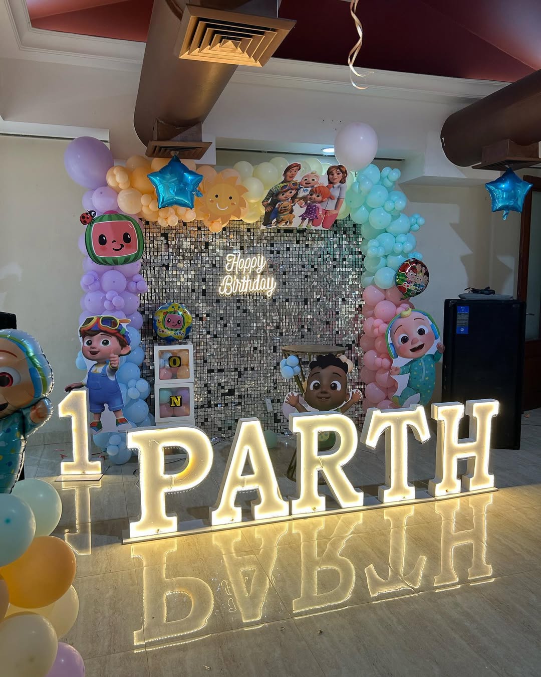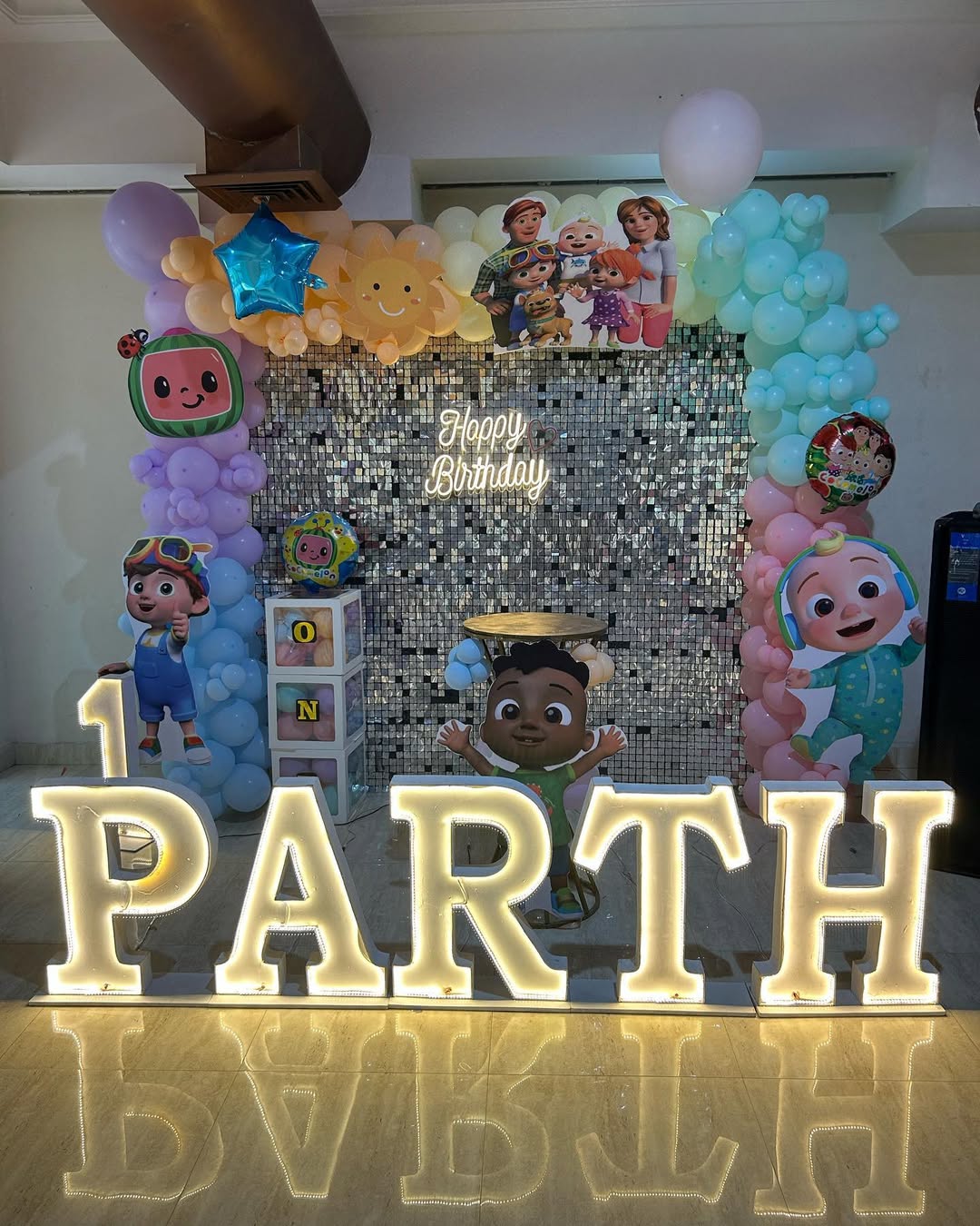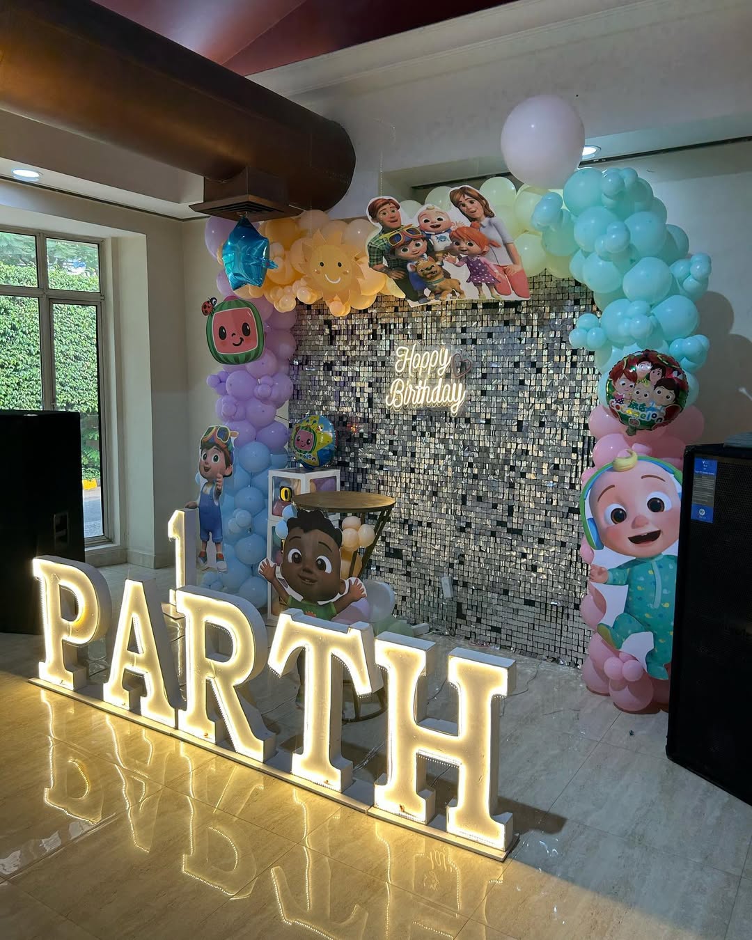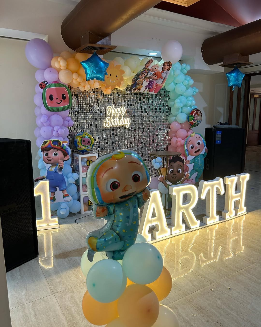 ✅Foil Balloons: 3-5 (Cocomelon character, star, or sun-shaped)