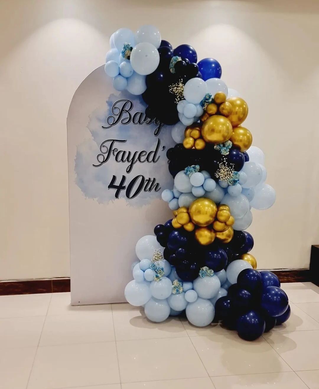✅Balloon Garland (Light blue, navy blue, black, and gold balloons
