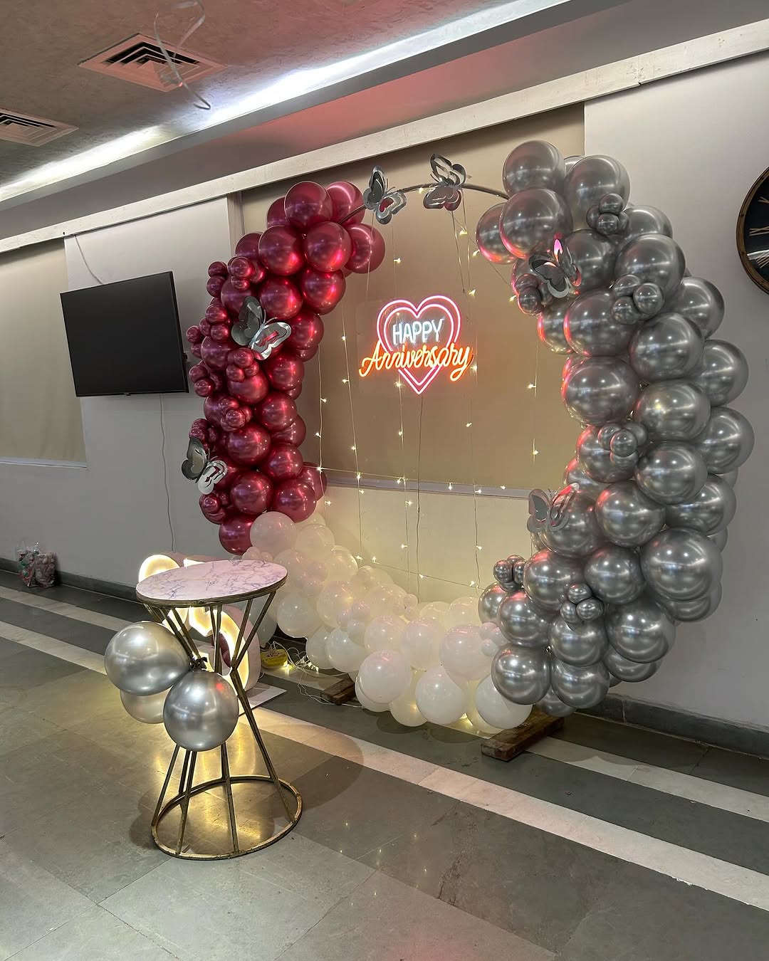 ⭐Customization Options: Change balloon colors, add more fairy lights, replace neon text, or upgrade with floral arrangements.