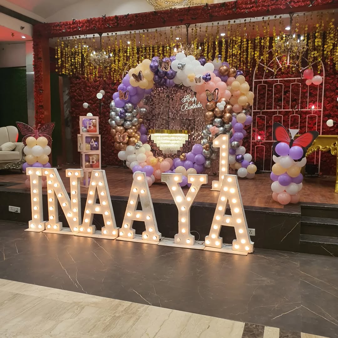 ✅Marquee Letters: Custom LED-lit letters spelling the name and age (Rented)