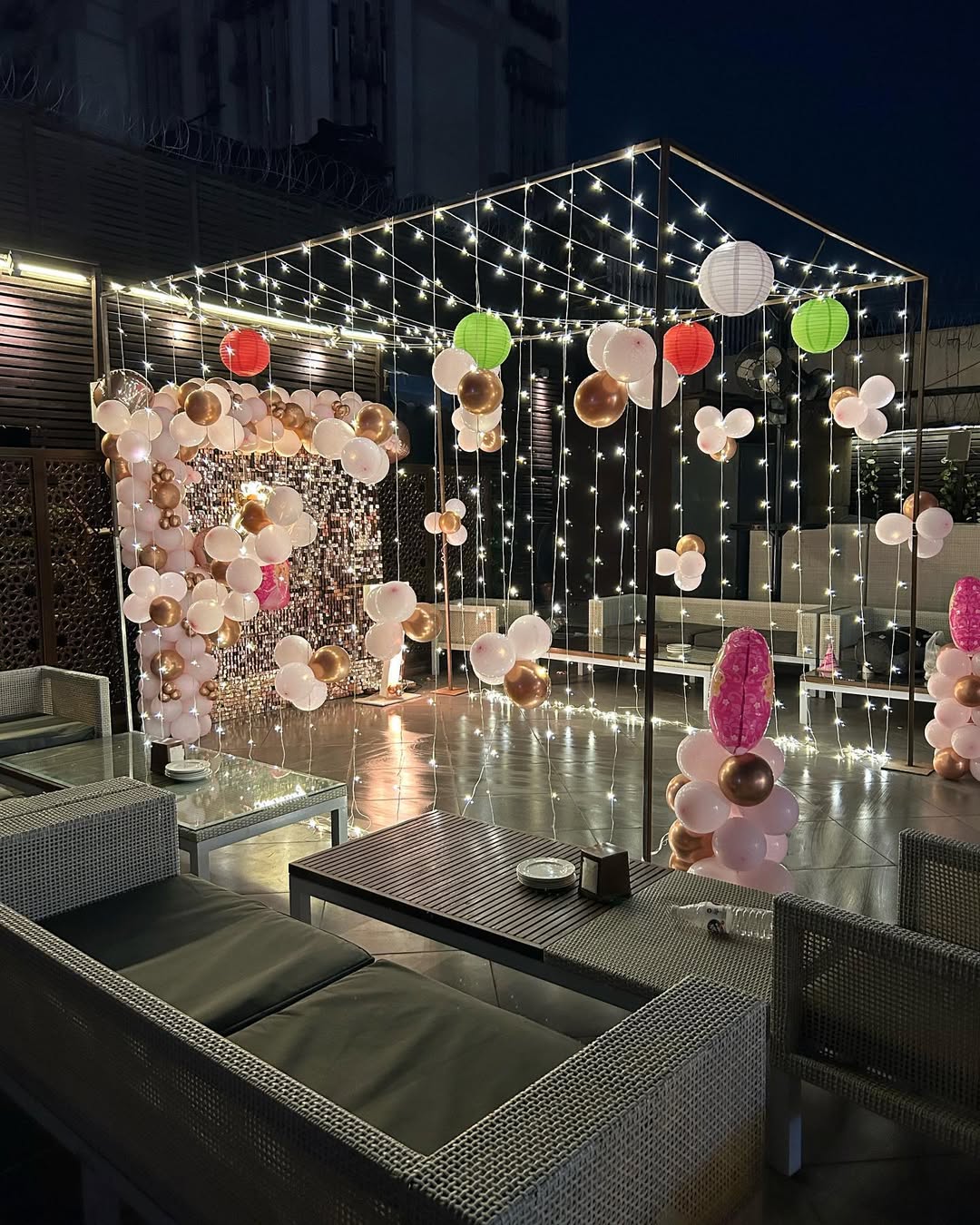 ✅ Fairy Light Canopy with Hanging Paper Lanterns (Rented)