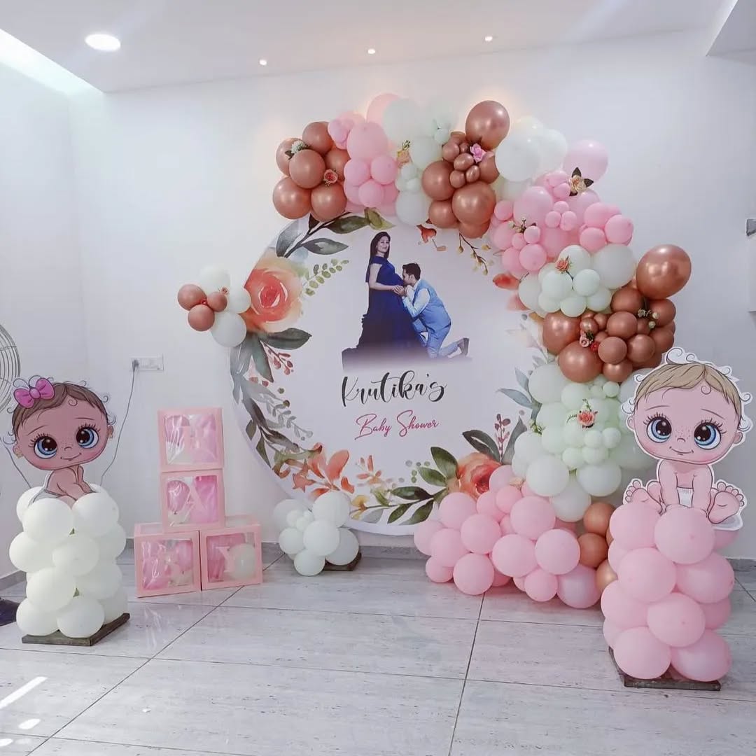 ⭐Customization: Can change colors, backdrop design, baby cutout styles, and balloon arrangements.