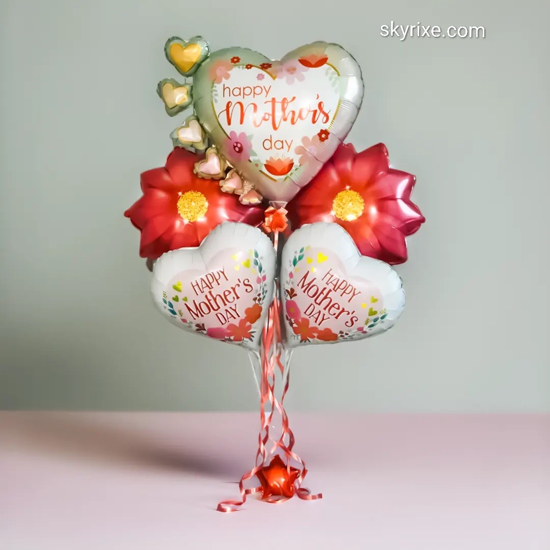 This Mother’s Day balloon bouquet delivers a joyful and heartfelt surprise the moment Mom sees it. The combination of flowers and hearts symbolizes love and appreciation, making it a thoughtful décor-plus-gift option.