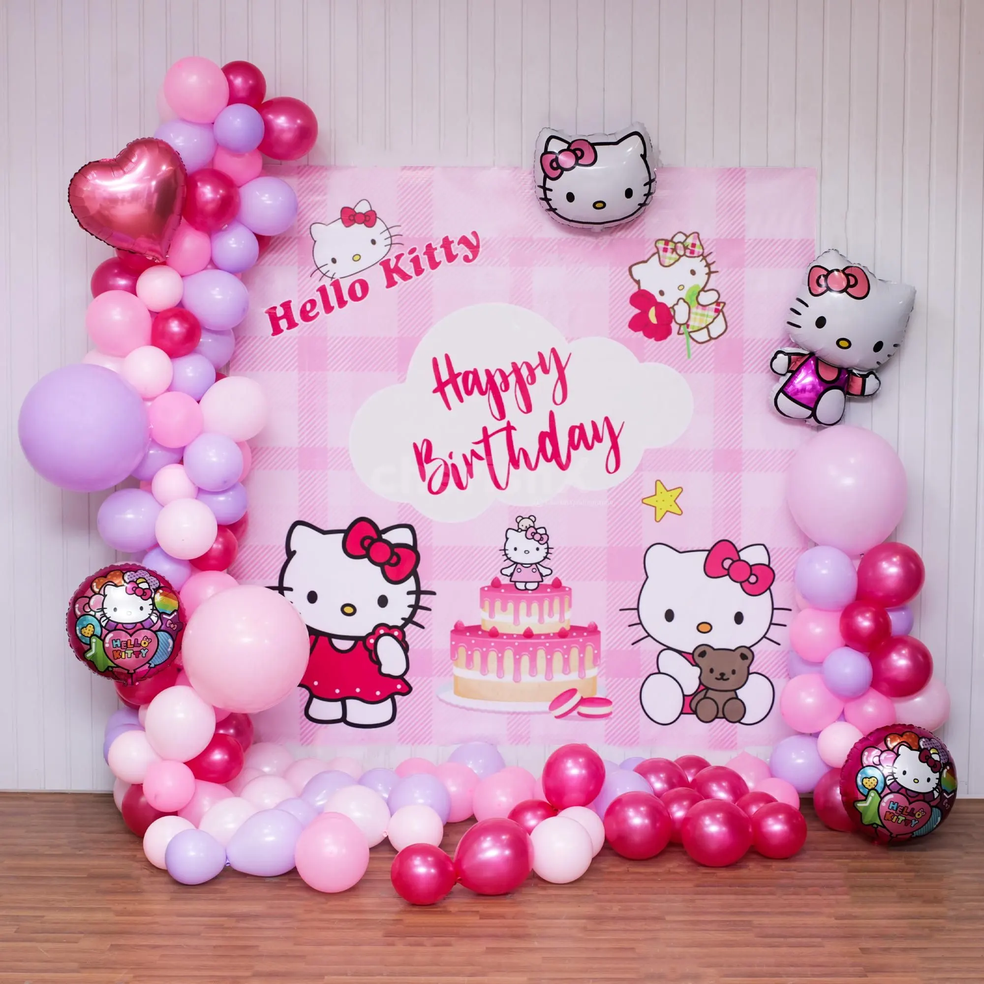 This charming and girly Hello Kitty-themed birthday setup is filled with soft pastel colors, adorable Hello Kitty foil balloons, and a pink checkered backdrop. It’s perfect for a little girl’s birthday celebration with her favorite character and a dreamy pink ambiance.