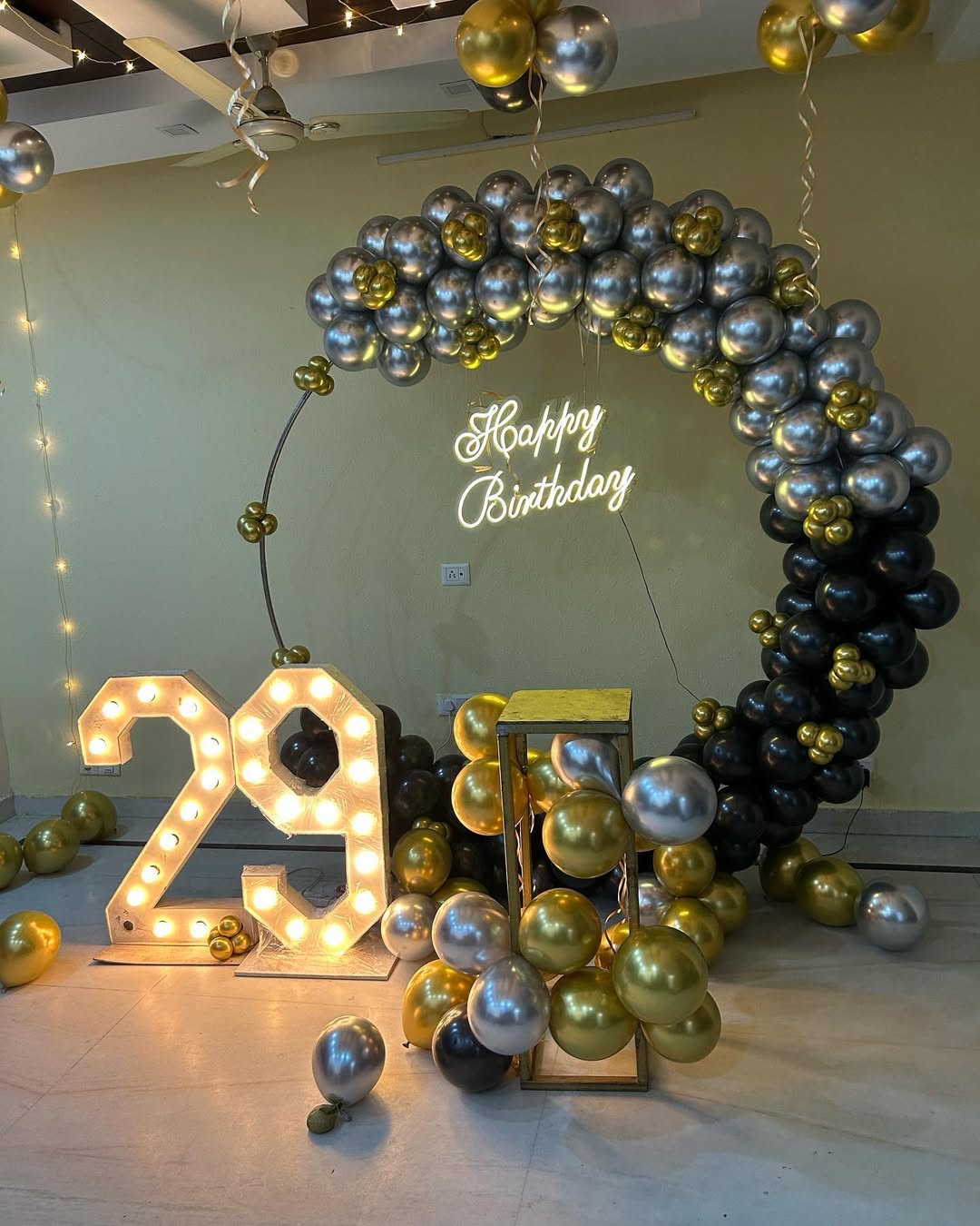 ✅ Marquee Numbers: Light-up "29" (can be changed as per age) ( Rented )