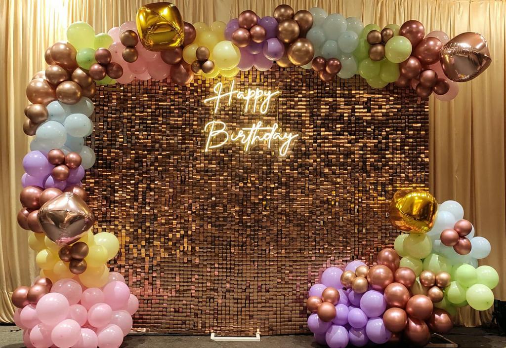 *️⃣ The combination of metallic and pastel tones creates a trendy, aesthetic, and Instagram-worthy background, making it ideal for photo sessions and a stylish party atmosphere.
