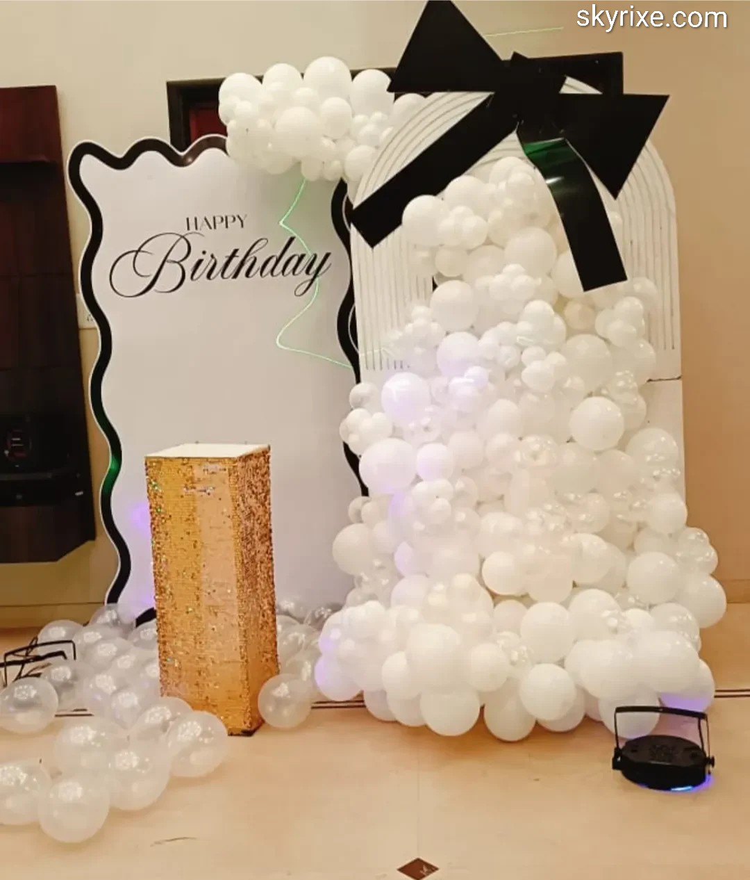 This décor creates a chic and upscale birthday atmosphere that feels straight out of a luxury event magazine. The all-white theme symbolizes elegance and purity, while the bold black accent adds a dramatic, modern twist.
