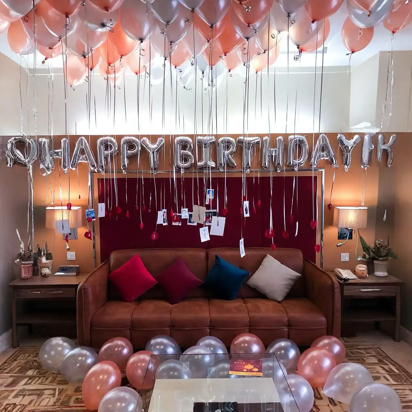 Celebrate a stylish 17th birthday with this luxurious monochrome balloon decor. Featuring a large black circular backdrop adorned with white, black, and chrome silver balloons, this setup is perfect for elegant indoor celebrations or modern venue parties. Ideal for photos and making the guest of ...
