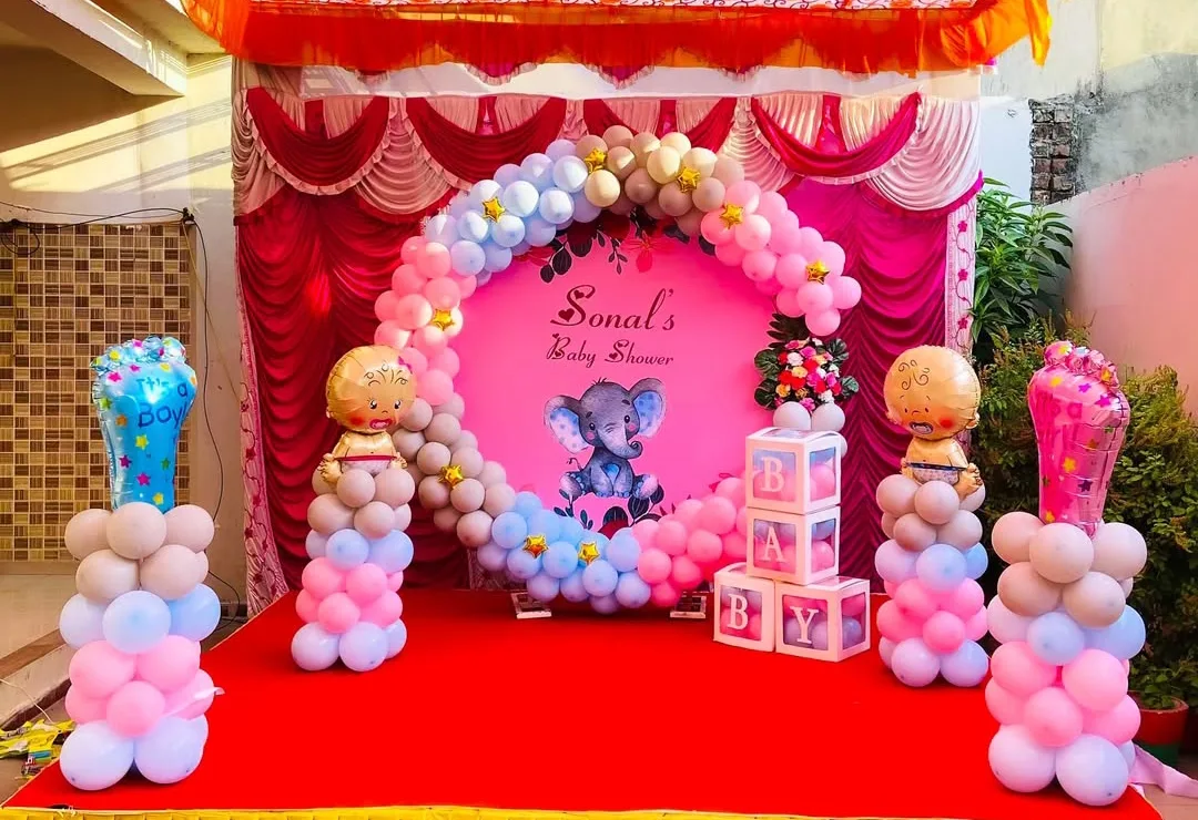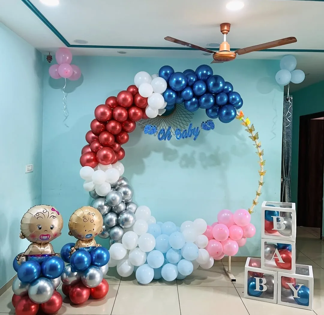 Celebrate your baby’s special day with this adorable and elegant Blue Teddy Naming Ceremony Balloon Backdrop Decoration, thoughtfully designed to create a soft, dreamy, and memorable setup. This decoration features a round backdrop with “Welcome to Naming Ceremony” text and a cute teddy bear sitt...