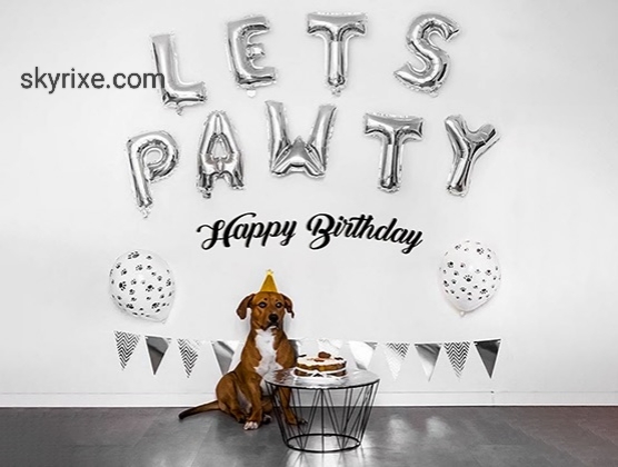Celebrate your furry friend’s special day with this stylish monochrome pet birthday wall décor. Featuring metallic silver “LET’S PAWTY” foil balloons, paw-print latex balloons, and a chic black-white bunting banner, this setup creates a modern and adorable backdrop for pet birthday photos and cel...