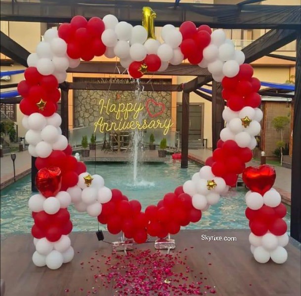 Turn your anniversary into a magical celebration with a romantic red-themed décor that symbolizes love and passion. The bold red balloons paired with soft white tones create a perfect balance of elegance and romance.