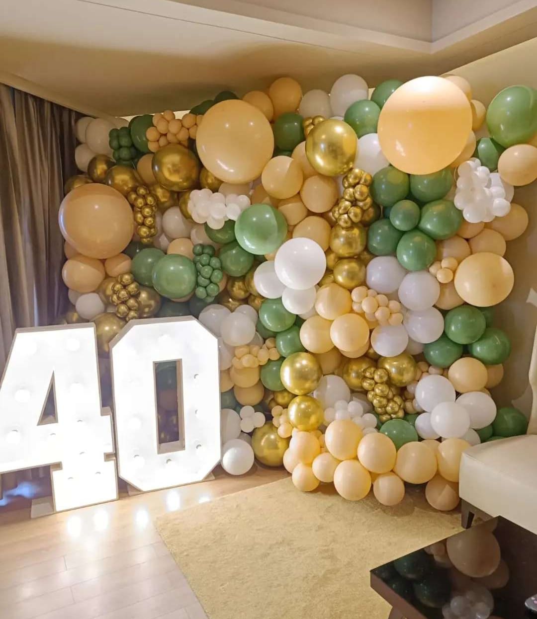 ✅Helium and air-filled balloons (gold, silver, white)