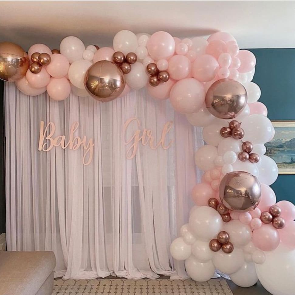 ✅Balloon Clusters: 3-4 flower-shaped balloon clusters on the wall and curtain