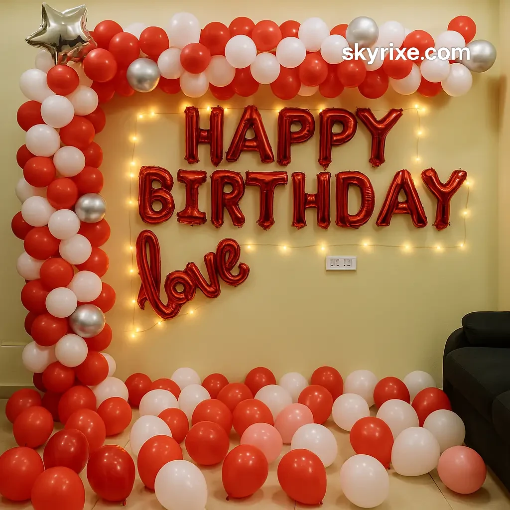 Create a warm and romantic celebration vibe with this Red Love Birthday Decoration Setup. Designed with a stunning combination of red, white, and silver balloons, this setup instantly transforms your space into a cozy and love-filled celebration corner.