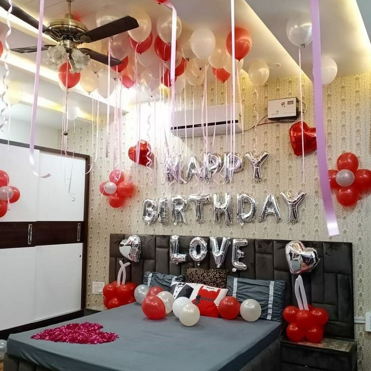 ✯✯This elegant and romantic birthday decoration features a silver, red, and white theme, creating a dreamy and intimate ambiance. The "HAPPY BIRTHDAY LOVE" silver foil balloons serve as the main backdrop, while floating c...
