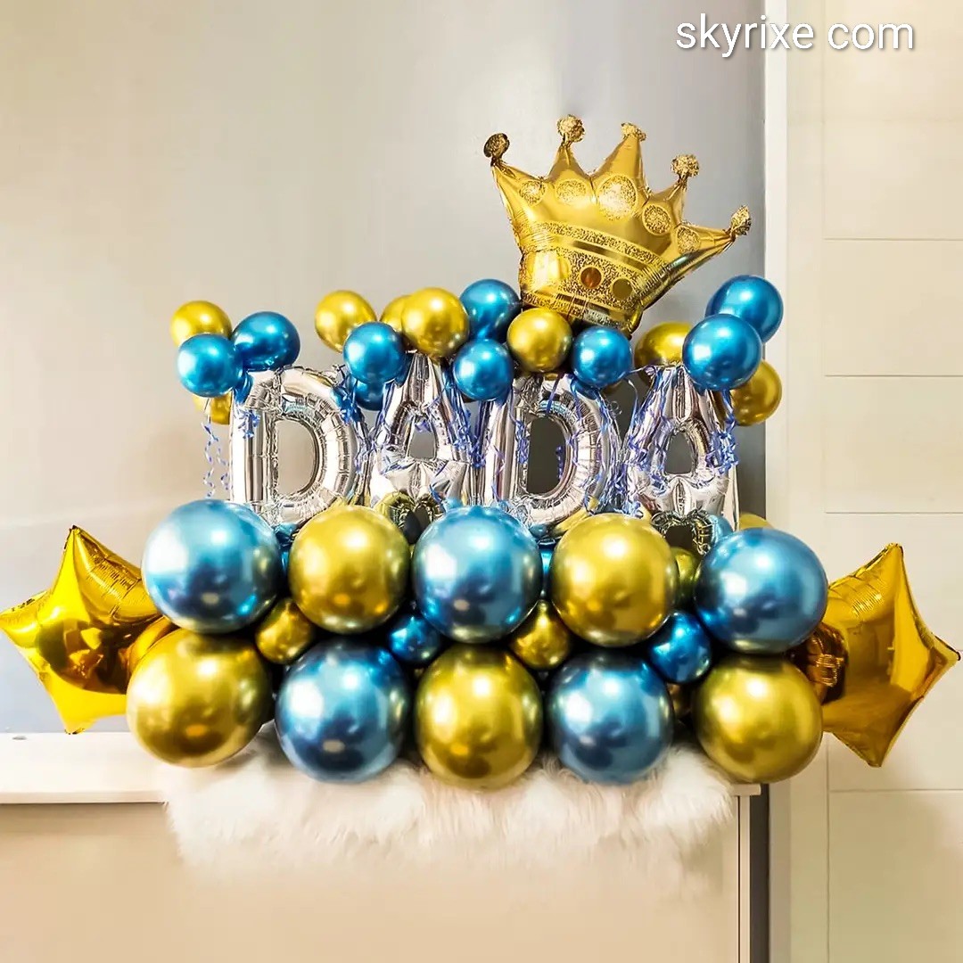 Designed as a royal tribute, this chrome balloon centerpiece turns any table or console into a celebratory focal point for dad. The metallic shine and crown element symbolize honor and appreciation, making it ideal for cake-cutting, surprise reveals, and heartfelt family photos at home.