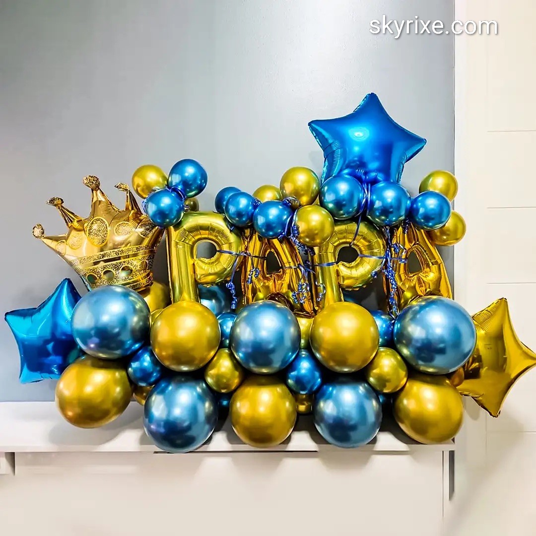 Honor your hero with this majestic blue-gold “PAPA” chrome balloon arrangement. Designed with premium metallic balloons, golden foil letters, and a royal crown accent, this tabletop décor exudes luxury and warmth—perfect for Father’s Day, papa’s birthday, or a heartfelt surprise. Its rich chrome ...
