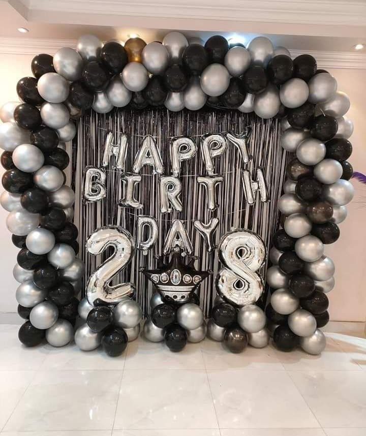 *️⃣Bold & Glamorous Look: The mix of metallic silver and black balloons creates a stylish, high-end atmosphere.